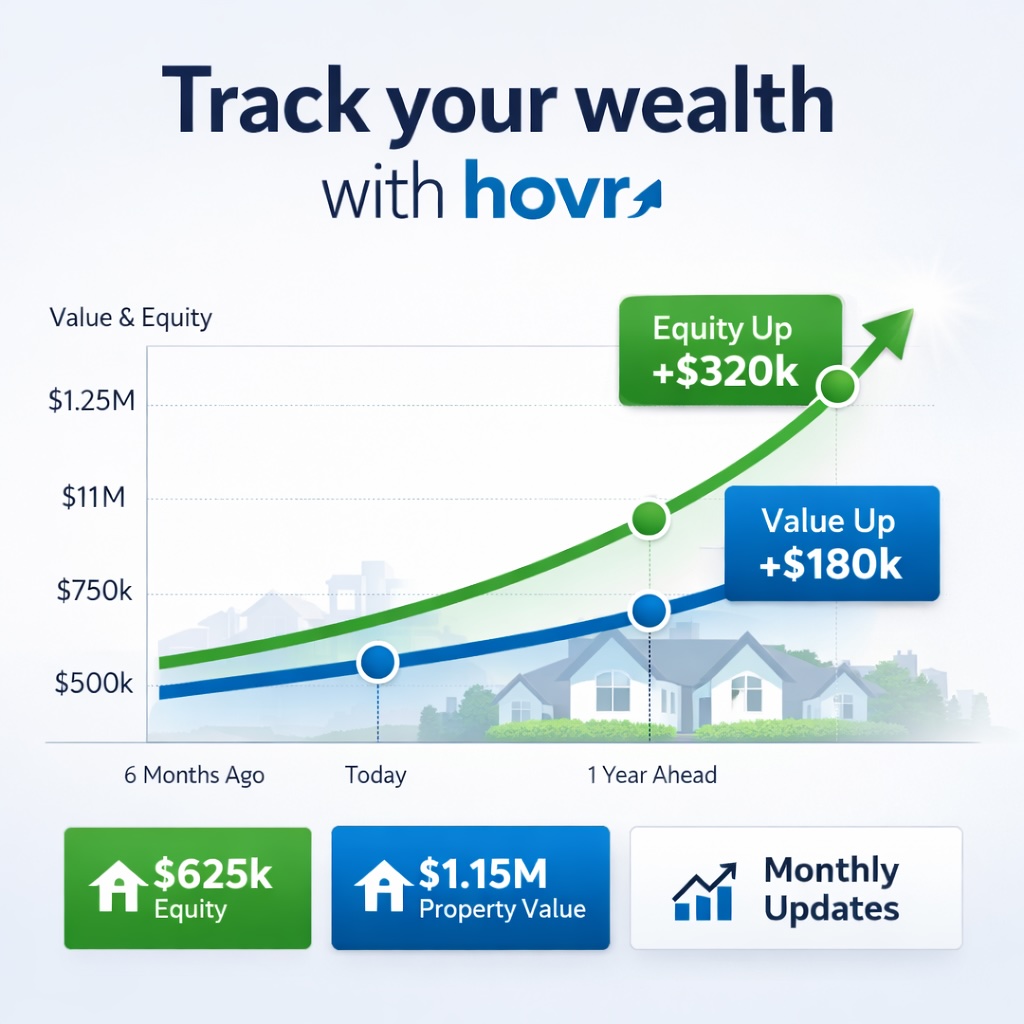 This is where hovr becomes powerful. Instead of waiting for annual reports or relying on outdated estimates, users receive monthly updates that reflect real market movement. A 0.7% monthly increase on a $1M property is $7,000 in value movement in just one month. Over time, that compounds into meaningful equity gains that can influence borrowing capacity, refinancing or investment decisions.
